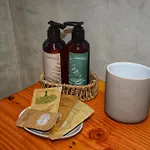 Det finns även hårtorkar, badrockar och handdukar samt en bidé, en separat toalett och en dusch.